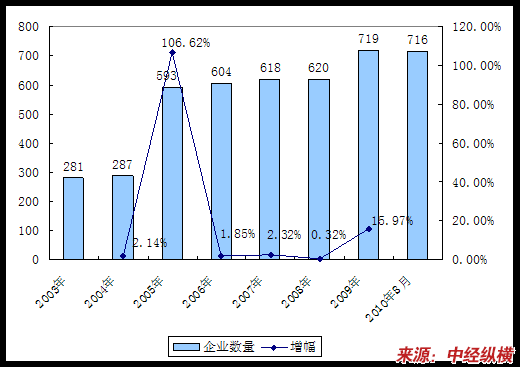 2003-2010年1-8月橡胶靴鞋制造 行业 企业数量增长情况