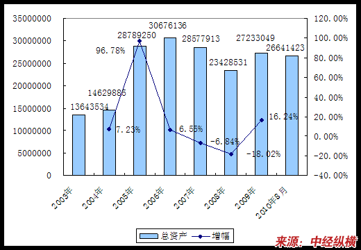 2003-2010年1-8月橡胶靴鞋制造 行业 资产总计增长情况