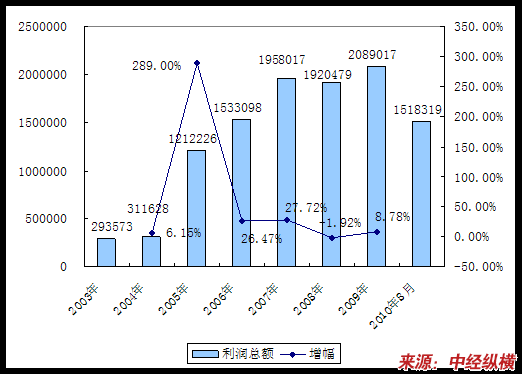 2003-2010年1-8月橡胶靴鞋制造 行业 利润总额增长情况