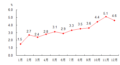 2010年居民消费价格涨跌幅度(月度同比)