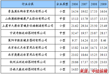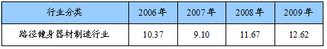 2006-2009年路径健身器材制造 行业 投资收益率横向比较