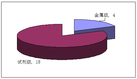 目前国内氯化铷生产主要有两种级别,一种为金属级,另外一种为试剂级,其中我国有金属级氯化铷生产企业4家,试剂级生产企业18家。