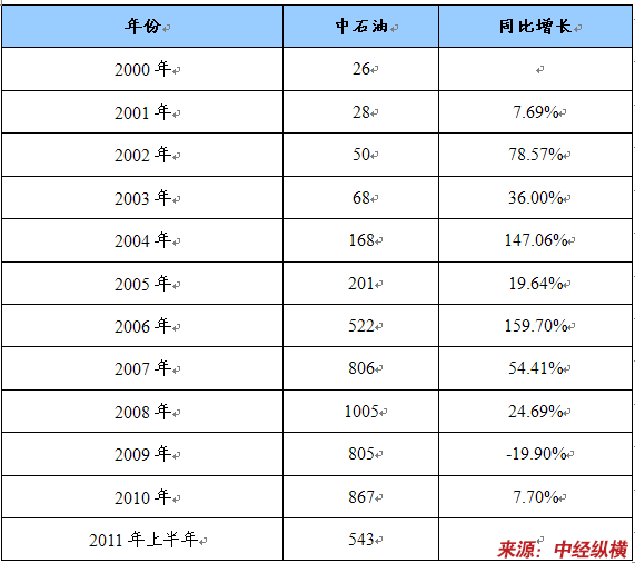 2000-2011年上半年中石油水平井数量 单位:年/口