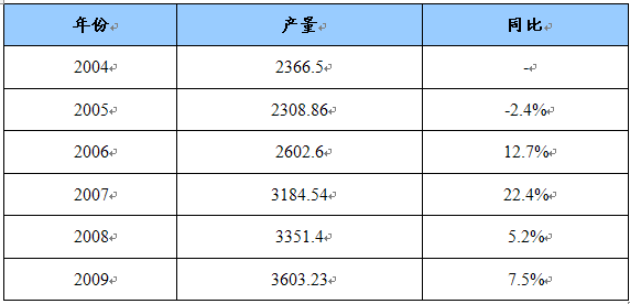 2004-2009年中国初级形态塑料产量 单位:万吨
