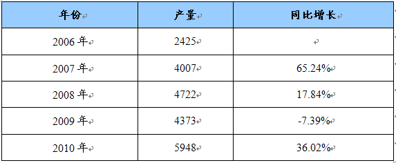 2006-2010年中国非制冷红外热成像仪产量及增长速度 单位:台