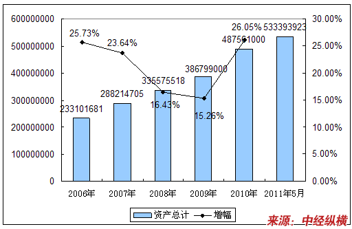 一、2006-2011年5月资产总计情况