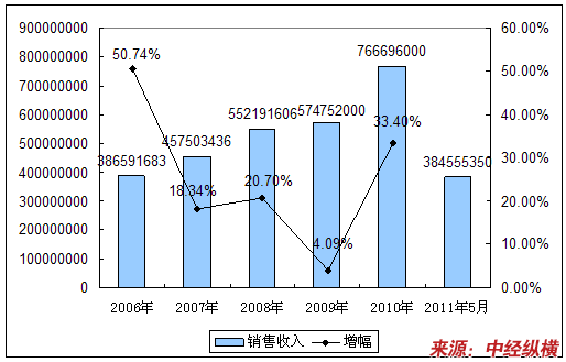 四、2006-2011年5月销售收入情况