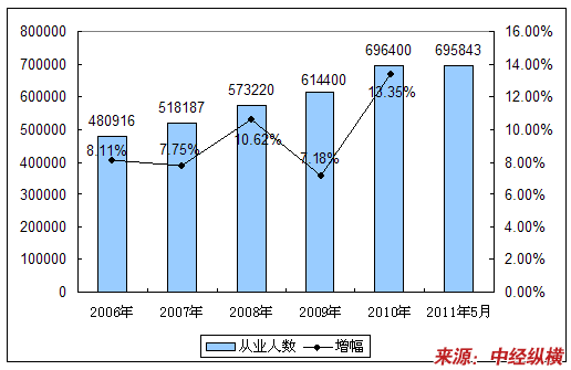 三、2006-2011年5月从业人员情况