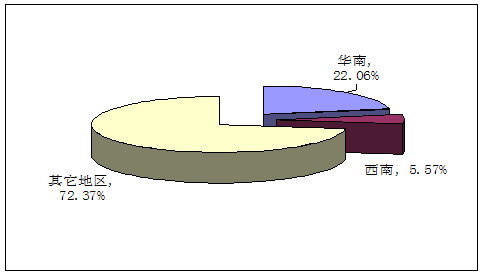四、2011年防粘纸市场总量及在华南、西南地区分布