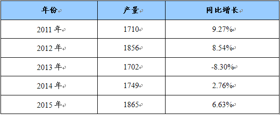 2011-2015年中国电解铝产量预测表 单位:万吨