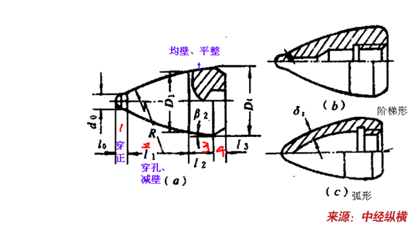 根据实际使用效果,顶头选择乳头型鼻部为佳,因其形状与磨损后的实际形状接近,并且鼻部壁厚均匀,冷却条件较好,有利于氧化膜的形成。