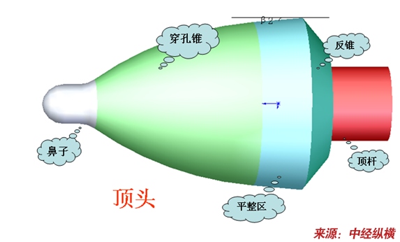 2、穿孔顶头的形状结构设计