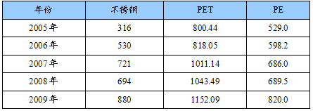2008年全球不锈钢价格呈前高后低的走势。2009年,我国扩大内需、产业 规划 等增长,国内建筑和家电 行业 的强劲需求,促使不锈钢价格逐渐恢复。原材料的价格对企业产品成本影响很大,不锈钢价格的上涨,影响了企业的生产成本,从而直接影响企业的经营效益。