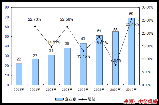 2003-2010年地质勘探和地震专用仪器制造 行业 企业数量发展状况
