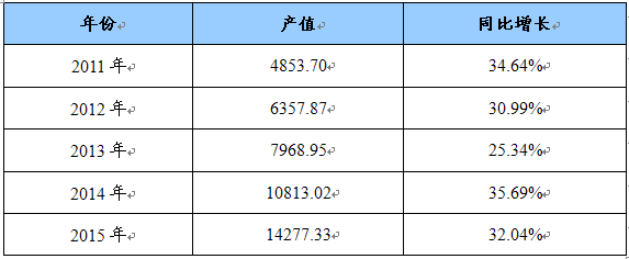 2011-2015年南北干货产值及同比增长预测表 单位:亿元