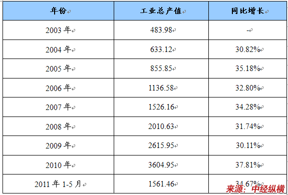 通过对我国南北干货规模以上企业统计,2003-2011年5月产值如下表所示: