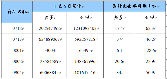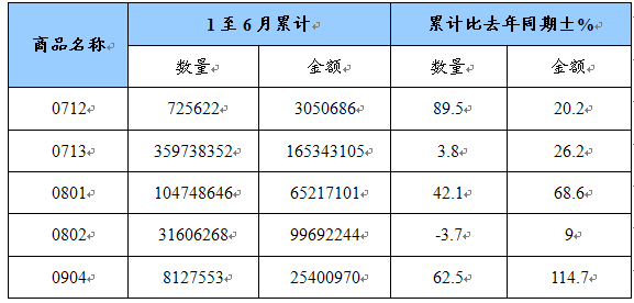 2011年1-6月我国部分干货产品进口统计 单位:千克