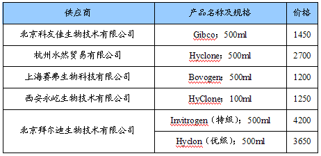 胎牛血清的价格昂贵,尤其是在国内技术缺乏的情况下,产品主要依赖进口,造成价格居高不下,特级胎牛血清价格高达3500-4000元/瓶(500ml),国内企业生产的价格在700元左右,但国内的供给能力有限,也不是真正意义上的胎牛血清。