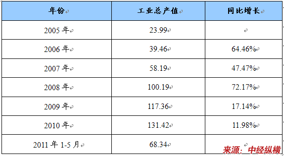 2003-2011年5月水平井、定向井、钻井装备及器具产值及同比增长统计表 单位:亿元