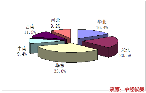 2010年水平井、定向井、钻井装备及器具需求地区分布统计图