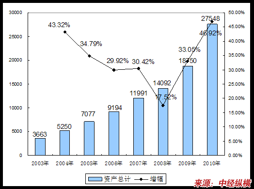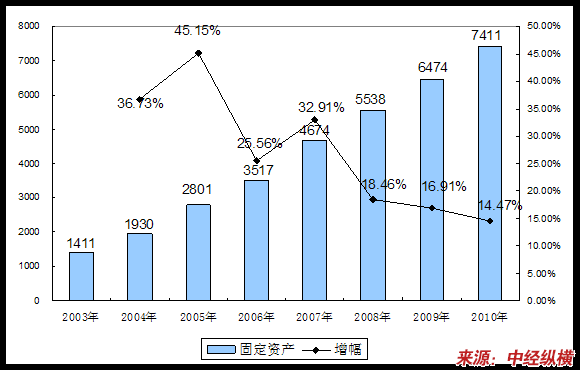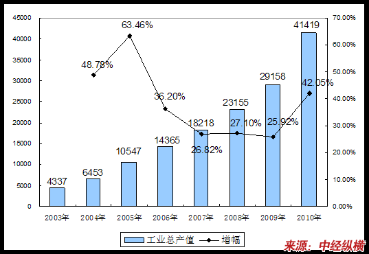 一、2003-2010年中温模料产业总资产发展情况 分析