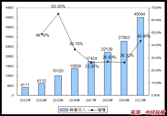 二、2003-2010年中温模料产业销售收入发展情况 分析