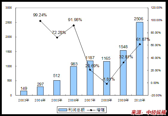 三、2003-2010年中温模料产业利润总额发展情况 分析