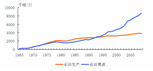 从石油需求和石油产量方面来看,国内目前石油需求大大超出了石油产量。据《BP世界能源统计2010》统计数据,2009年国内石油日产量3790千桶,而消费需求达到8625千桶,供需缺口达到4835千桶;但是石油作为重要战略资源,国家的基本政策立足于国内油气资源的勘探开发,加速自身发展,因此这种巨大供需缺口长期存在的情况不会一直持续。加大对石油勘探开采的力度是必然之举。