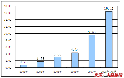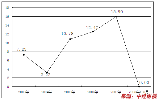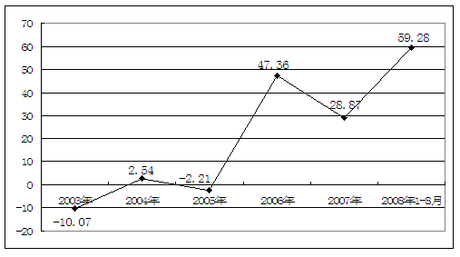 2003--2008年1-8月发展速度 分析 (固定资产增长率)