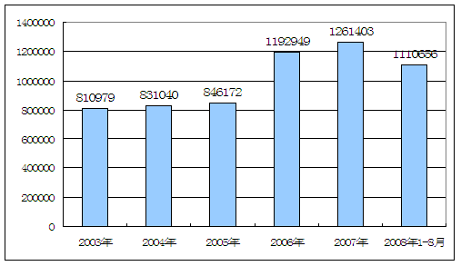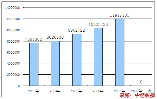 2005年铁路机车车辆及动车组的销售收入为295亿元;2006年增加到336亿元,比上年增长13.9%;2007年增加到378亿元,比上年增长12.5%。从未来对铁路建设及铁路设备 行业 的投资及政策支持可看出,未来几年我国铁路设备 行业 将有很大发展前景。