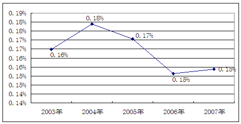 2003—2007年铁路机车车辆及动车组制造业占GDP比重