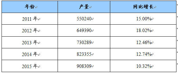 2011-2015年我国轨道车辆制动设备产业规模及增幅预测表 单位:套