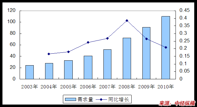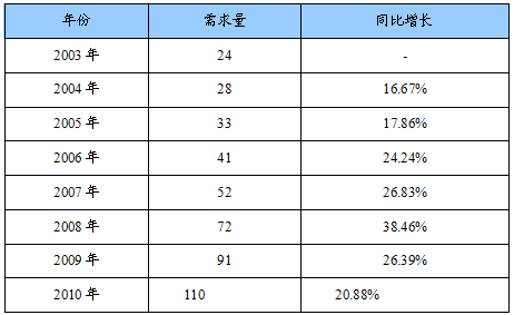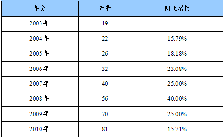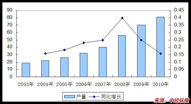2003-2010年玻璃钢夹砂(RPM)管道产量及增长