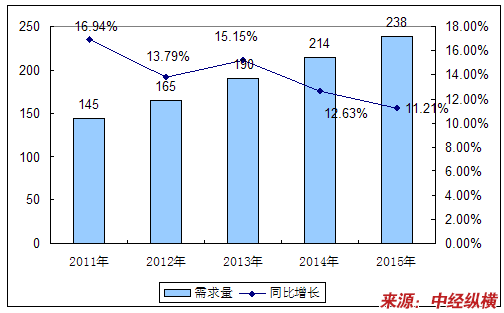 2011-2015年中国柴油机驱动高压泵需求量预测 单位:万台