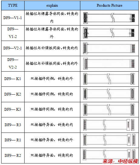 2009年公司最新研发的DF9系列产品是在FFC端子线的基础上研发加工而成的,可以将31、41、51PIN的DF9插座(公/母)连接在FFC上进行塑封,具有接触性能好,使用方便等特点,广泛用于LCD显示器,并可以按客户样品及图纸的要求进行产品加工。
