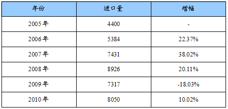 前些年,我国太阳能玻璃生产能力较弱,产品多是从国外进口,近些年,随着国内太阳能玻璃生产技术的不断进步及产业规模的不断扩大,改变了产业主要依赖进口的形势,但是由于国内市场需求巨大,因此近几年国内产品进口量及进口增幅还是比较大。