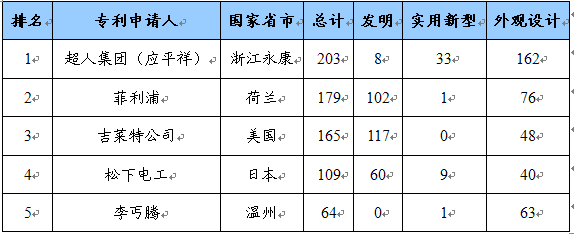 剃须刀中国专利权人排名
