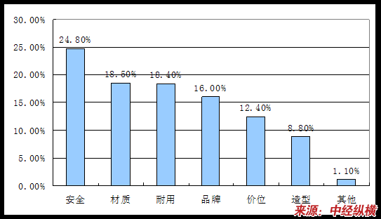 而从消费者的调查来看,安全、轻便耐用、材质是其最为关心的问题,然后才考虑到品牌与价位。其实消费者对安全和轻便耐用的认识完全来自市场上的成熟品牌教育。
