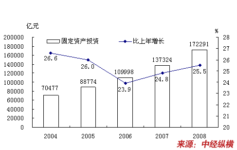 2004-2008年固定资产投资及其增长率