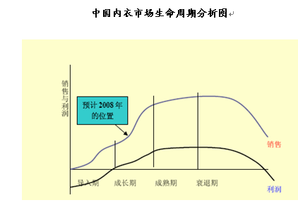 中国内衣 行业 目前处于其生命周期的成长期,成长状况良好,而且具有很大的发展潜力。
