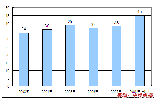2003-2008年1-8月企业数量情况 分析