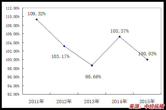 2011-2015年我国壁布价格指数预测图