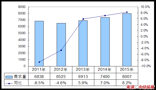 2011-2015年我国墙布(壁布)需求量预测图