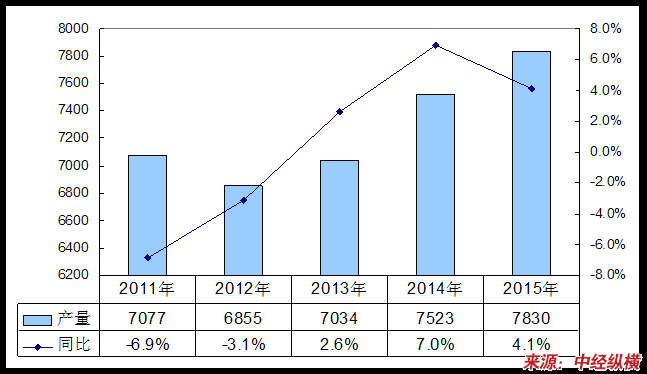 2011-2015年我国墙布(壁布)产量预测图