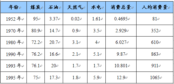 中国能源消费总量和构成的变化 单位:亿吨标准煤/千克标准煤