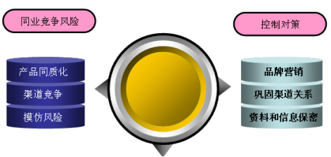 真石漆产品 行业 同业竞争风险主要为产品同质化明显,销售渠道和供货渠道相似或相同,增强竞争力的策略和方法容易被模仿。相应的控制策略包括:加强产品的品牌营销和品牌文化宣传,突出产品的细微差别化;巩固渠道关系和保持稳定的合作伙伴;对于企业的资料和信息做好保密工作。