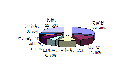 钨产业不断向资源产地倾斜,主要分布在江西、湖南。2006年两省钨精矿产量占全国钨精矿总产量的84%,江西的APT生产能力占全国生产能力的46.6%;钨粉生产能力占全国生产能力的32.97%;2006年湘赣两省的钨铁占全国产量的50.02%。