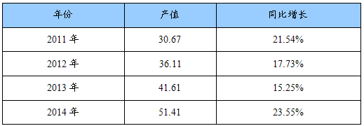 2011-2014年食品检测试剂产值预测