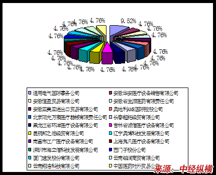 2010年1季度我国乳腺机国际招标代理商份额