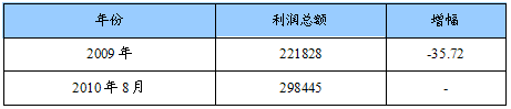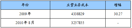 2009-2010年8月食盐 行业 主营业务成本 分析